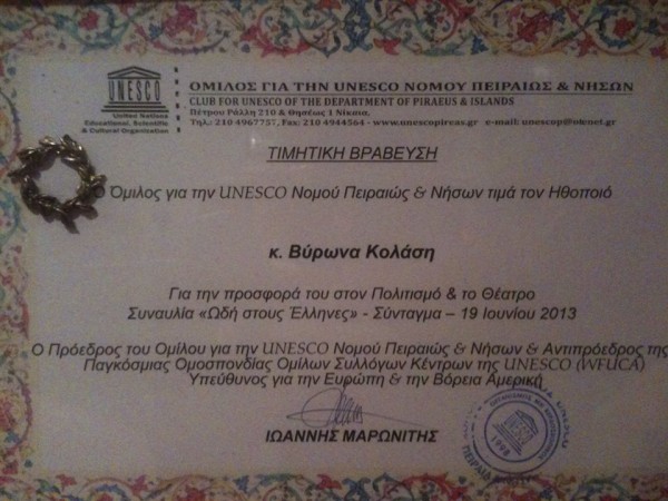 Η Επάξια και σπουδαία Βράβευση του αξιότιμου Κύριου Βύρων Κολάση απο την UNESKO ..